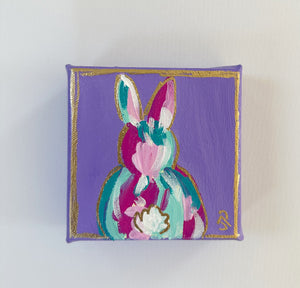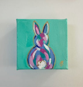 Original Acrylic Bunny Painting 7- 4x4x1.5 Acrylic on canvas