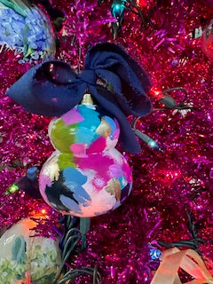 Hand Painted Ceramic Bauble - Magenta, Navy, Green
