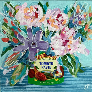 "Homemade gravy" 8x8 Acrylic and mixed media collage on canvas