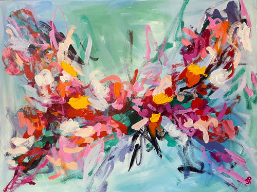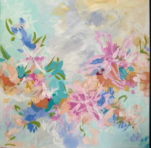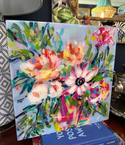 "Flowers in the concrete"- 20x20x0.5 Acrylic & Oil Stick -Original on Canvas